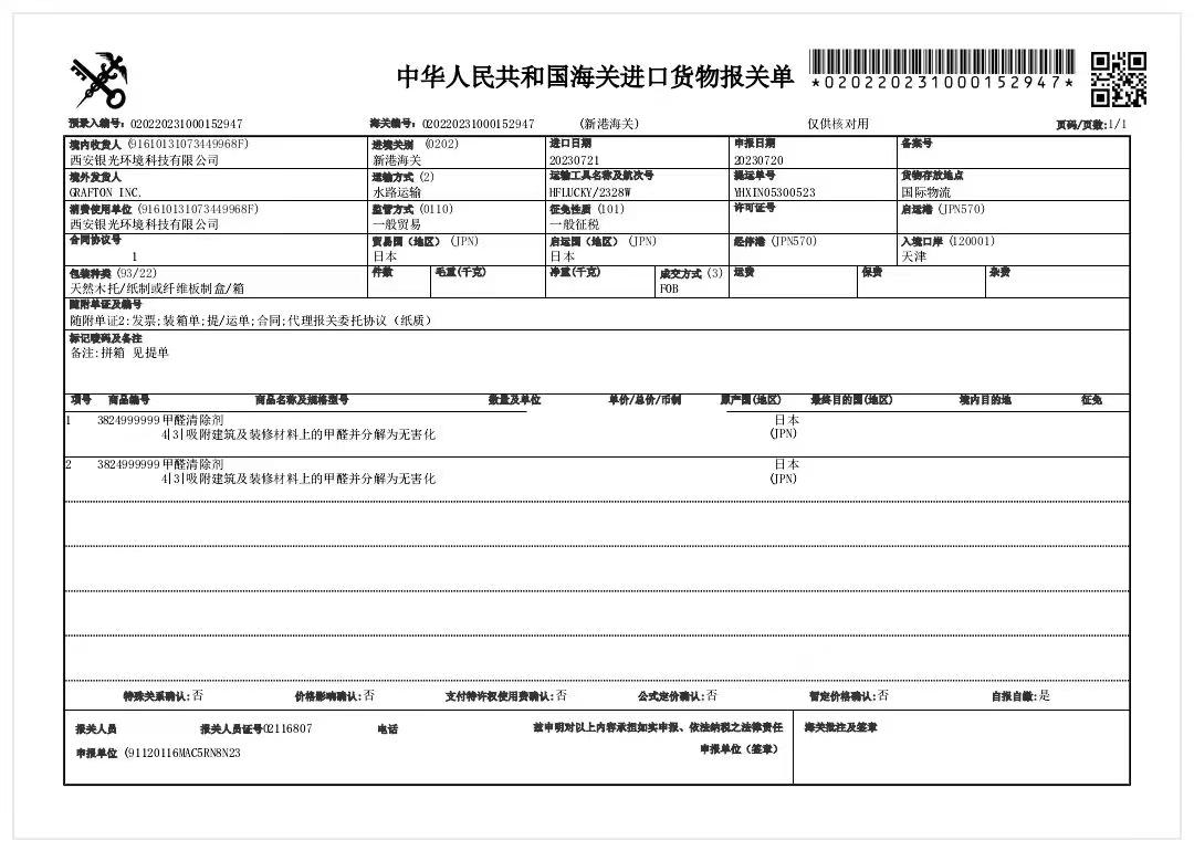 荃芬產(chǎn)品日本報(bào)關(guān)單憑據(jù)記錄。